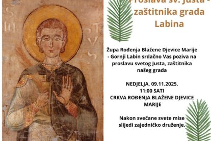 Župa Rođenja Blažene djevice Marije - Gornji Labin poziva vas na proslavu blagdana sv. Justa, zaštitnika grada Labina. Budući da spomendan ...
