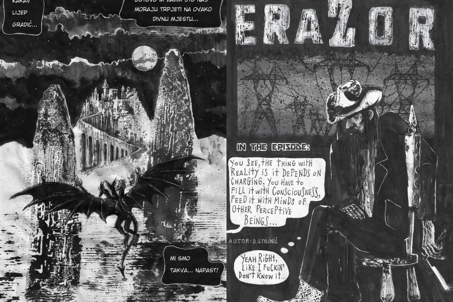 Iako već dugo radi u strip mediju (prvi je strip napravio 1990. godine), Stojnić se stripom intenzivnije bavi od 2019. godine, kada ih i po prvi puta i objavljuje, najčešće u okviru regionalne strip-art platforme “Komikaze”, kako u webzin izdanjima, tako i u godišnjoj tiskanoj antologiji. Objavljivao je također u SF reviji “Marsonic” te u znamenitom švedskom underground strip fanzinu “CBK (C’est Bon Kultur)”. Prošle godine beogradska udruga za promicanje underground glazbene i strip kulture Matrijaršija, zajedno s ko-izdavačem „Komikaze“, objavila je njegov prvi duži strip album “Medusalem”. Uz MEDUSALEM, koji ima 64 table, publika će na izložbi moći vidjeti i tri kraća strip uratka: 3GLAVI, SKYN (objavljen u 20., jubilarnom broju SF revije “Marsonic”) te najnoviji i nedovršen strip ERAZOR.