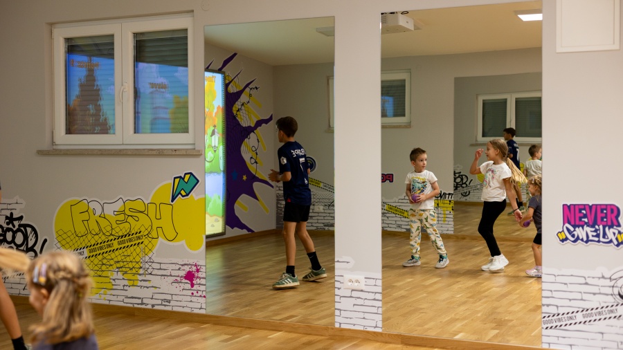 Posebno želimo istaknuti polivalentnu, multifunkcionalnu sportsku dvoranu s interaktivnim sustavom koji je namijenjen za sportske aktivnosti, edukaciju i igru. Veličina cijelog fitness centra je oko 160 m2, a novouređene polivalentne dvorane 55 m2, koja će se koristiti za grupne vježbe, aerobik, fizioterapeutske vježbe te razne dječje proslave i igre.