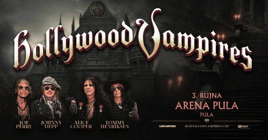 Jedan od najintrigantnijih rock projekata današnjice, Hollywood Vampires, vraća se na svjetske pozornice nakon tri godine pauze. Alice Cooper, Joe Perry, Johnny Depp i Tommy Henriksen ponovno će zasvirati zajedno, a nakon brojnih europskih gradova koje će posjetiti u sklopu ljetne turneje, ova slavna četvorka po prvi put stiže i u Hrvatsku! Veliki rock spektakl održat će se 3. rujna 2026. godine u pulskoj Areni, a posjetitelje očekuje nezaboravna večer puna prave sirove energije, legendarnih hitova i autentične rock’n’roll atmosfere. Ulaznice su u pretprodaji u srijedu, 1. travnja od 10 sati i to putem službene stranice izvođača dok će generalna prodaja započeti u četvrtak, 2. travnja u 10 sati u sustava Eventima.